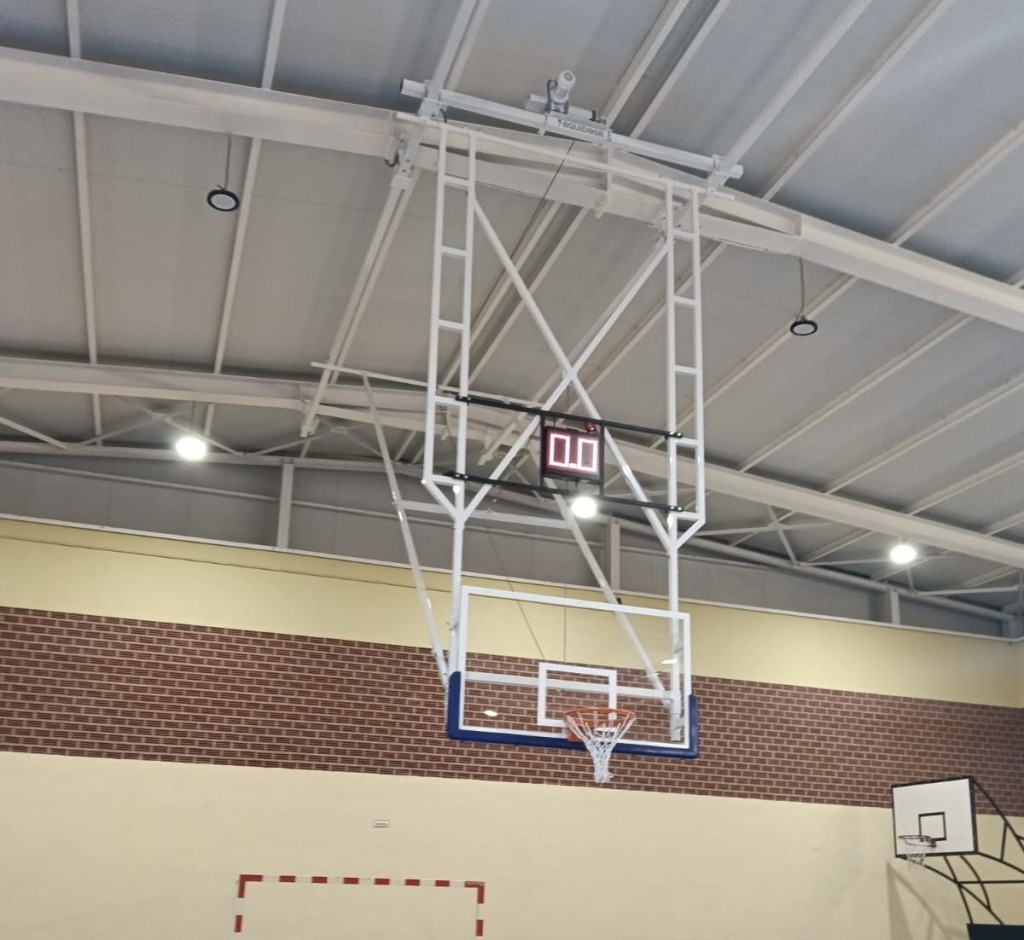 La instalación de dos canastas profesionales de techo y un nuevo marcador electrónico ha supuesto una inversión municipal de 22.000 euros para reforzar el baloncesto local.