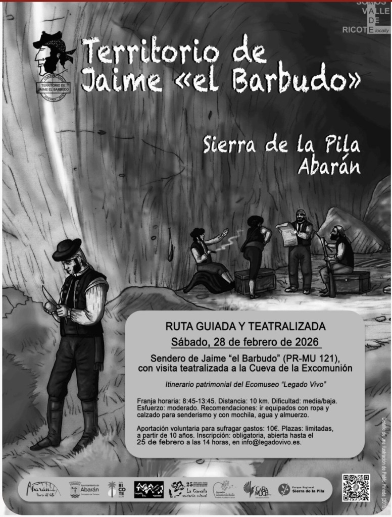 El público asistente recorrerá el Sendero de Jaime «el Barbudo» (PR-MU 121) de la Sierra de la Pila, con visita teatralizada a la Cueva de la Excomunión (Abarán), donde, sin quererlo, interactuará con el legendario bandolero y sus allegados.