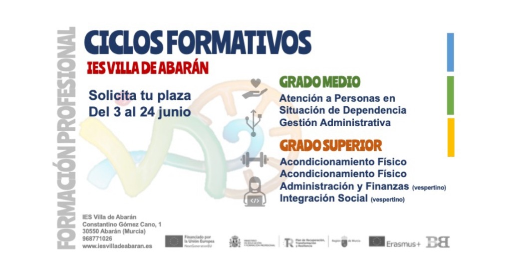 El IES Villa de Abarán oferta para el próximo curso un Grado Medio de Atención a Personas en situación de Dependencia y otro de Gestión Administrativa.