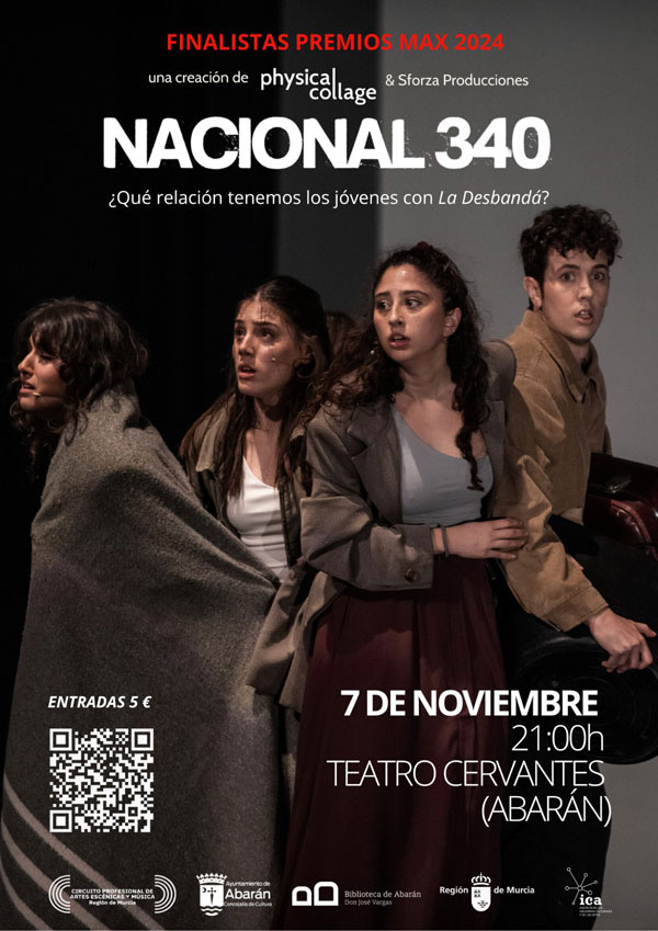 La programación cultural del último trimestre en Abarán continúa con fuerza en el Teatro Cervantes, que este viernes 7 de noviembre a las 21:00 horas acogerá una de las propuestas teatrales más destacadas del año: la obra “Nacional 340”.