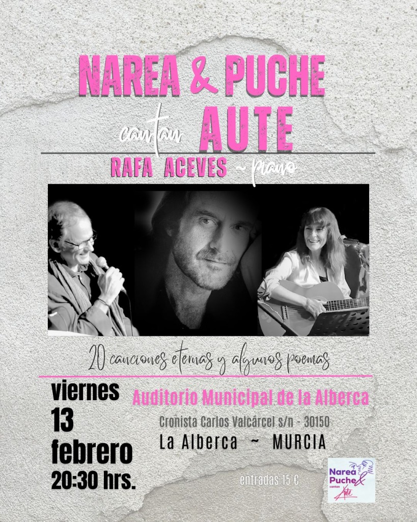 Cristina Narea, de origen chileno y el abaranero Jorge Puche, acompañados al piano por el jazzista Rafa Aceves, ofrecieron un cuidado recorrido por 20 canciones eternas y algunos poemas del autor, integrando música, palabra y proyecciones audiovisuales que dialogaban con la vida y el pensamiento de Luis Eduardo Aute. El resultado fue un espectáculo coherente y delicado, donde el respeto por la obra original se combinó con una interpretación personal y contemporánea.